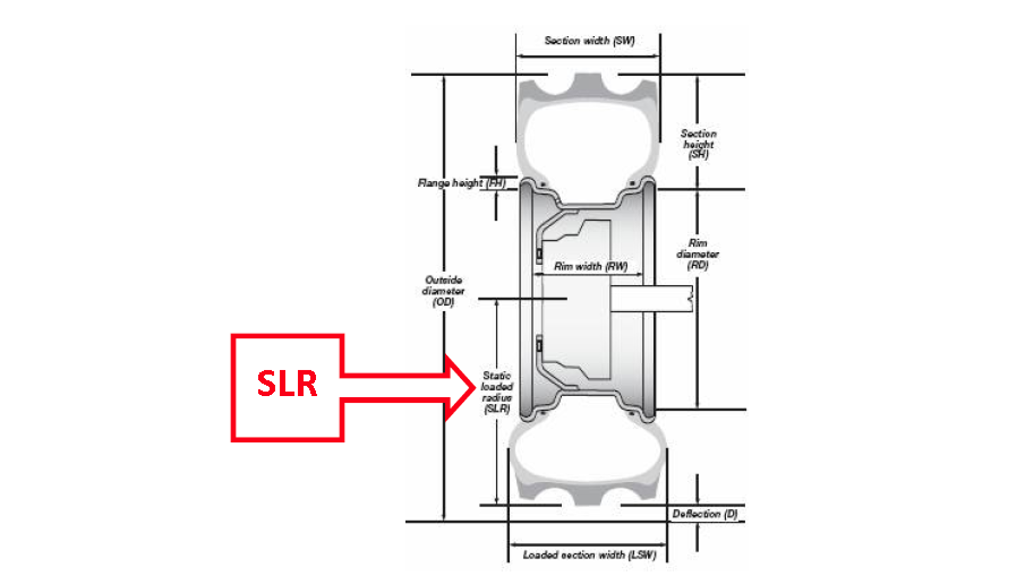 SLR is the distance under full axle load from the axle centre to the ground. Ground MUST be firm (ideally concrete) to avoid sinkage.