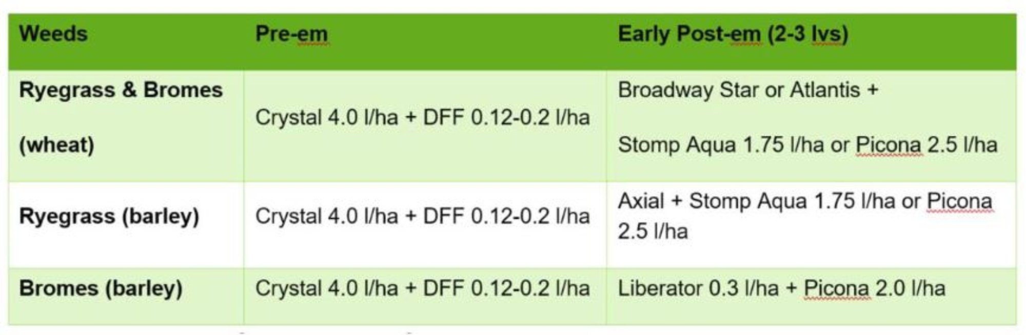 Pre and Early Post-Emergent Programmes for Ryegrass & Brome