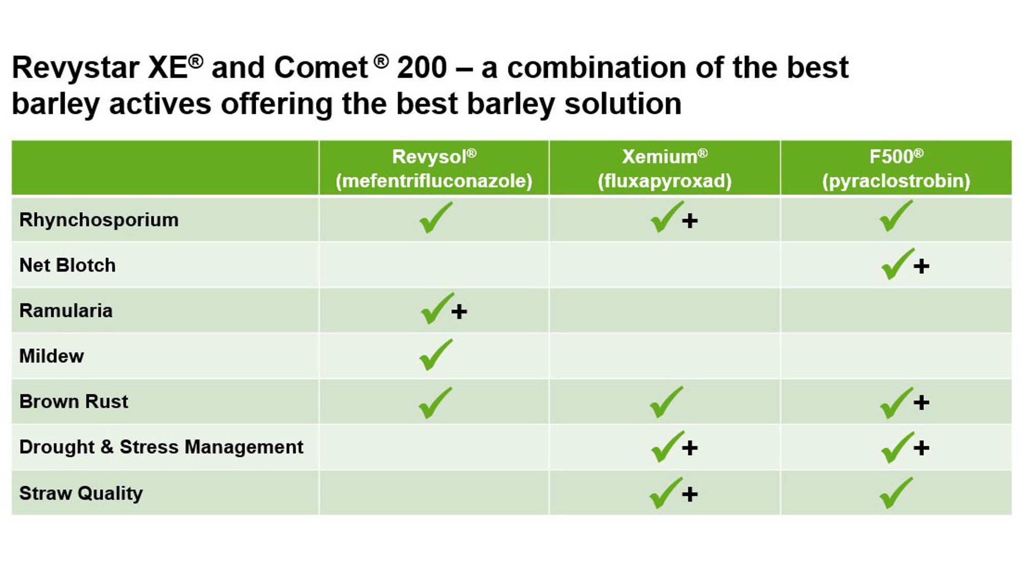 - The combination of Revysol® and Xemium® within Revystar® XE retains its market-leading position against ramularia in independent trials, and should be considered a core application at T2.
