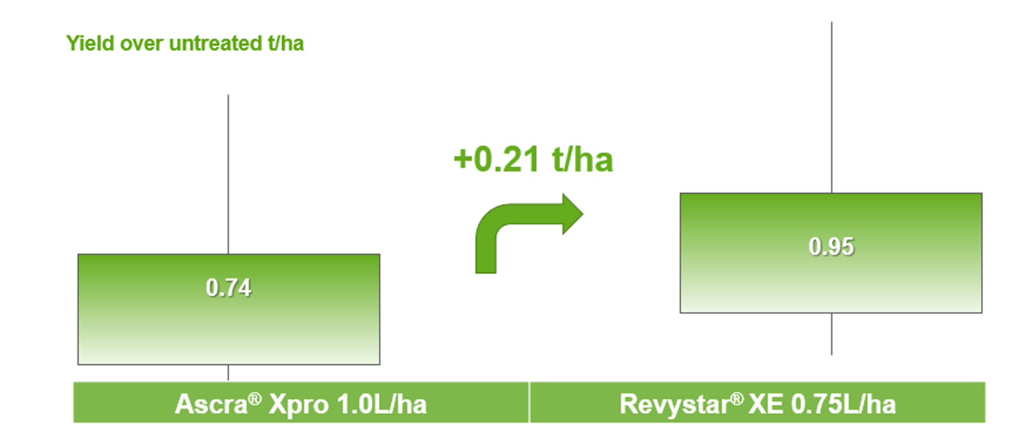 Revystar® XE is a tried and tested solution containing the first Isopropanol-Azole, Revysol® and the innovative SDHI, Xemium®. Revystar® XE is stronger where it matters providing broad spectrum disease control against septoria, rusts and eyespot. Revystar® XE is even better value in 2025 and a fantastic option for good all round wheat disease control.