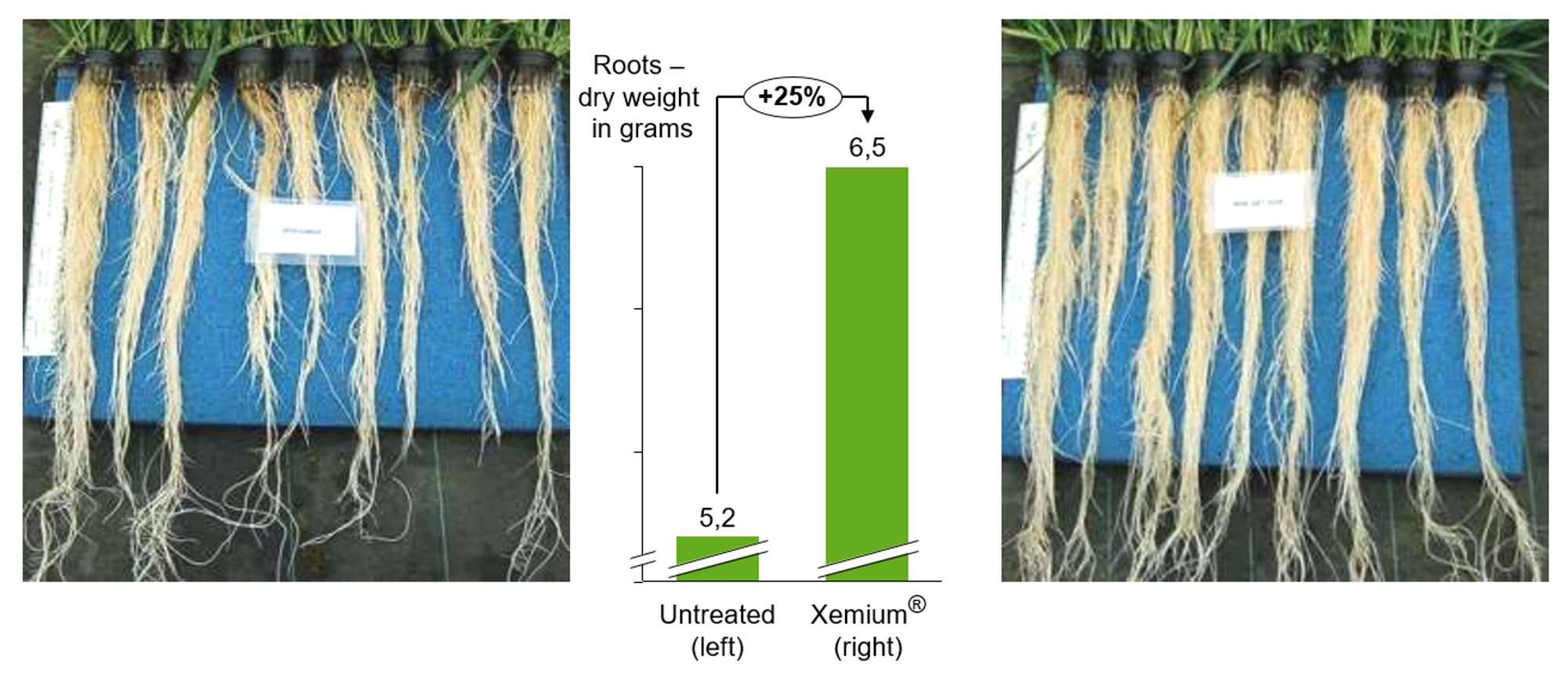 If dry conditions continue it is important to try and reduce the stress of the crop, to enable it to reach its full potential. For over 15 years independent experts have been evaluating BASF active ingredients on their ability to support plant health. Xemium® in Revystar® XE has been proven in multiple studies to support plant health. Rothamsted Research have shown how Xemium® increases the roots ability to access more water at depth and ADAS has shown Xemium® to help wheat plants to better manage water, increasing the plants drought tolerance.