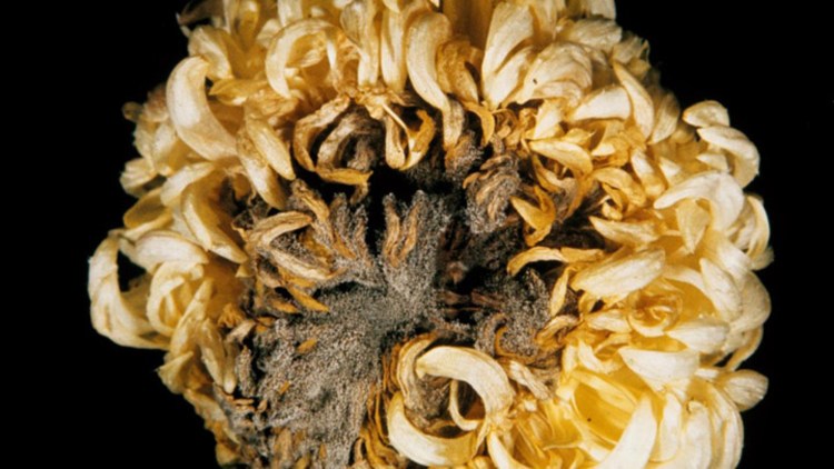 Air-borne spores of the grey mould pathogen are ubiquitous. It is present in decaying plant residues within the crop and surrounding areas. It can develop rapidly given favourable warm and wet or humid conditions. Flowers are frequently colonised and fallen petals develop grey mould whilst on the leaves or on the ground.