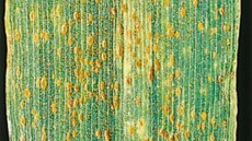 Symptoms of brown rust infection are often seen in the autumn on early-sown crops as individual orange to brown pustules. With early autumn infection individual pustules can be confused with yellow rust, being orange to brown in colour and about 0.5-1.0 mm in diameter. Later in the season, diagnosis is much easier as the brown pustules tend to be scattered at random compared with the more striped symptoms of yellow rust (Puccinia striiformis). Although symptoms are most common on leaves, in severe attacks pustules can also occur on the stem and glumes. Brown rust infection of the glumes can result in a reduction in specific weight. When leaves begin to senesce, a 'green island' develops around individual pustules. Towards the end of the season dark teliospores are sometimes produced.