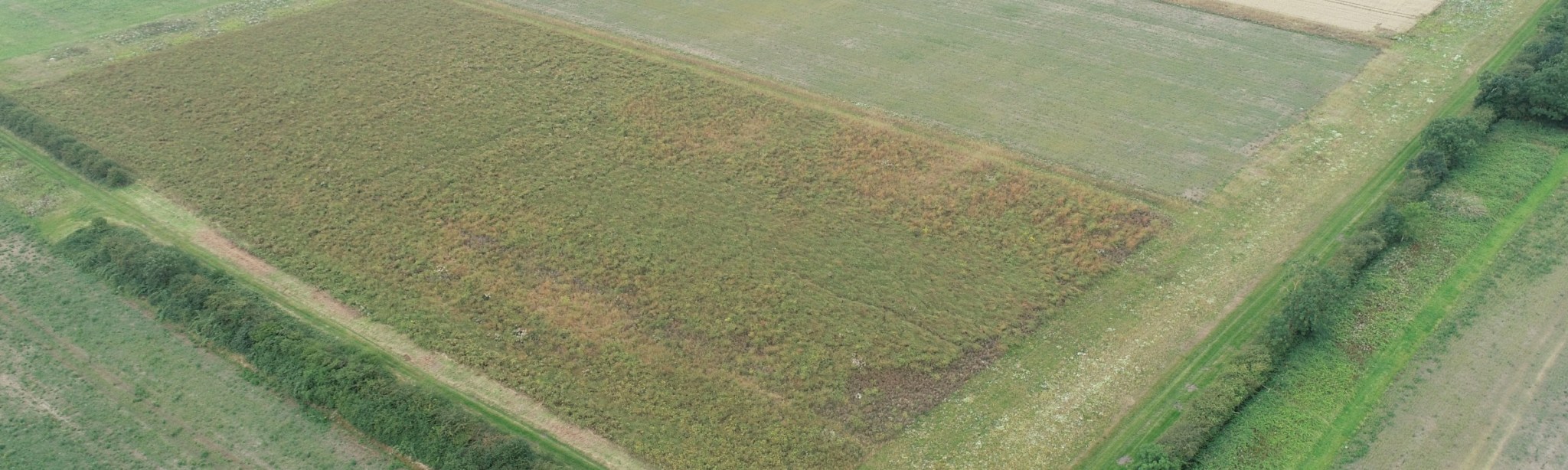 ‘Fortress Field’ covers 12.5 ha of Hanslope clay arable farmland and is located at The Grange Farm in Northamptonshire. The field slopes from west to east, and is under-drained and uniform in composition, allowing real treatment effects to be seen. The wheat drilled in 2020 and harvested in 2021 provides the crop baseline data. In 2021, BASF, in collaboration with host farmer William Pitts, mapped out seven innovative plot areas, where the interventions aim to improve the soil health, increase carbon storage, provide pollinator and IPM beneficial habitats, and produce core data on profitability and climate resilience.